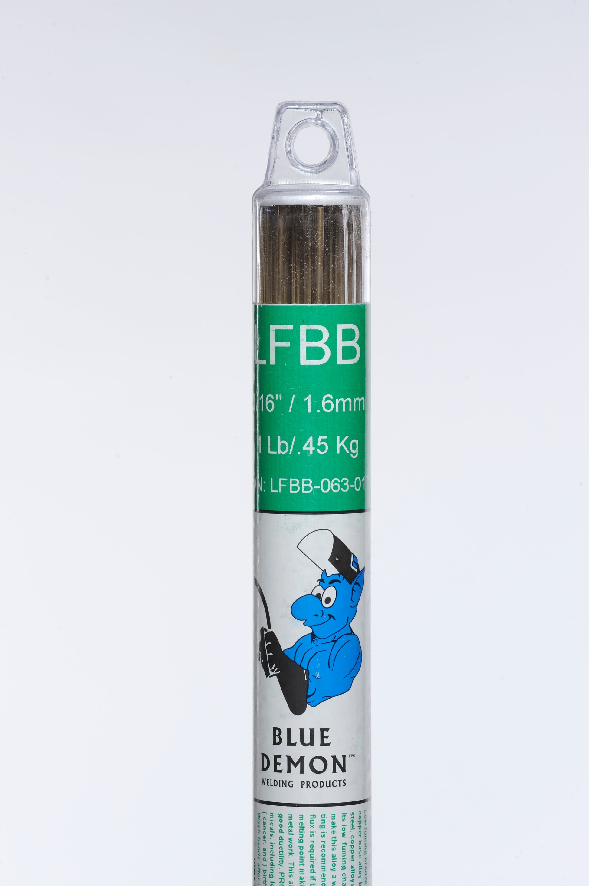 Blue Demon LFBB - Low fuming bronze bare is a general-purpose, copper base alloy brazing rod used extensively for gas brazing steel, copper alloys, cast iron, nickel alloys and stainless steel. Its low fuming characteristic and good mechanical properties make this alloy a widely used general-purpose product. Preheating is recommended for some applications and a bronze brazing flux is required if the rod is not coated. This brazing rod has a low melting point making it easily machinable and excellent for sheet metal work. This alloy also possesses high tensile strength and good ductility.